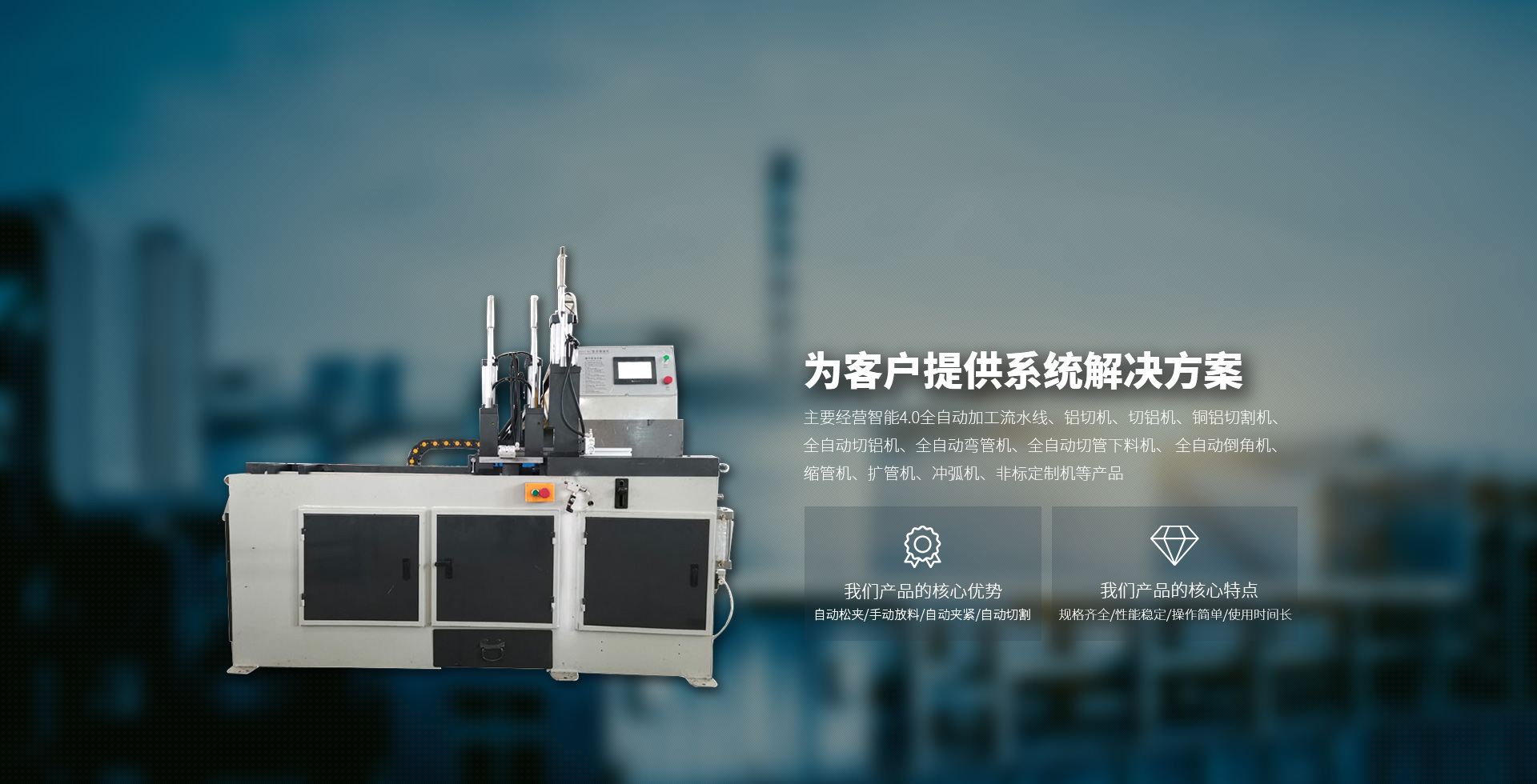 主要經(jīng)營智能4.0全自動加工流水線、鋁切機(jī)、切鋁機(jī)、銅鋁切割機(jī)、全自動切鋁機(jī)、全自動彎管機(jī)、全自動切管下料機(jī)、 全自動倒角機(jī)、縮管機(jī)、擴(kuò)管機(jī)、沖弧機(jī)、非標(biāo)定制機(jī)等產(chǎn)品